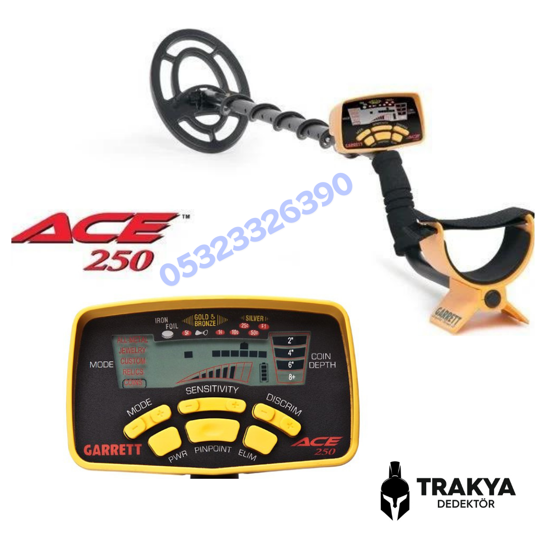 Garrett Ace 250 Ace 250 sikke arama, kalıntı arama, plaj arama için kullanılır. Garrett Ace 250'yi çok sattıran en önemli özelliği "On" tuşuna basınca profesyonel bir dedektör kullanıcısı gibi arama yapmanızı sağlayabilmesidir.