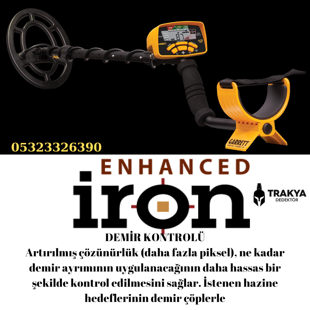 Artan Demir Çözünürlüğü ACE 250’nin 3 kademeli demir çözünürlük özelliği, demir içeren topraklarda hedefteki metal hedefi gizleyen etmenleri elimine etmeye yardımcı olur.